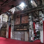 into the wall between boiler room and the former coal depot. Untamed steel tubes and rough concrete formed the edge of the artificial mouth to the coal depot where the biggest part of the stage