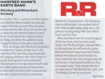 The only flaw in Manfred's Sunday show was the lack of most of most of their "Solar Fire" album. I think this was their finest and I missed a lot of my personal favourites from it.