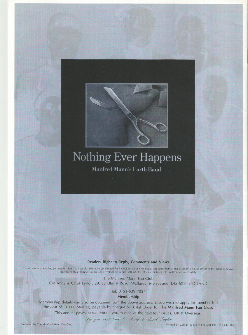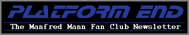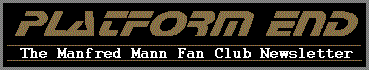For 23 years I have followed MMEB. It was only when I was told by a work colleague that they had recently appeared in Newport, Wales that I realised the band were still touring. It was 14 years since I last saw my lifetime passion perform! This made me determined to seek out further information of where MMEB may well be appearing again. So I contacted Manfred 's Workhouse Studios in London. It was from here I was given the Fan Club's details and so decided to contact Andy and Carol. This turned out to be the best move I have ever made! After a telephone call we received lots of information and all the back copies of Platform End, these have made fabulous reading. I was pleased to find that the band were playing in Dudley at the Robin Hood. My fiancee and I arrived at the venue at 6.30 p.m. having travelled up from Bristol. As we entered the bar to my surprise the first face we saw was that of Mick Rogers, slowly realising so too were most of the rest of the band. Christmas had arrived late!! We introduced ourselves to Andy and were made to feel extremely welcome. We were then introduced to some of the band by Andy. Needless to say we collected the autographs we could and guarded them as a prized possession! As we entered the hall I purchased a T-Shirt, we tried to gain our position at the front of the hall to get a good view of this long awaited concert. We were joined by Andy and Graeme and awaited the arrival on stage of my heroes! Brilliant! Fabulous! What other words could describe this band. The evening was well worth the trip