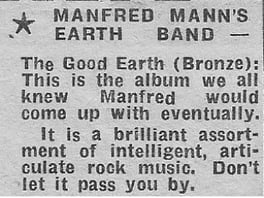 ‘The Good Earth’ is the fifth studio album released by Manfred Mann's Earth Band in 1974. Its opening song is a cover of "Give Me The Good Earth", written by Gary Wright and released on his 1971 solo album ‘Footprint’, while tracks 2 and 3 were originally by Australian progressive rock band Spectrum.